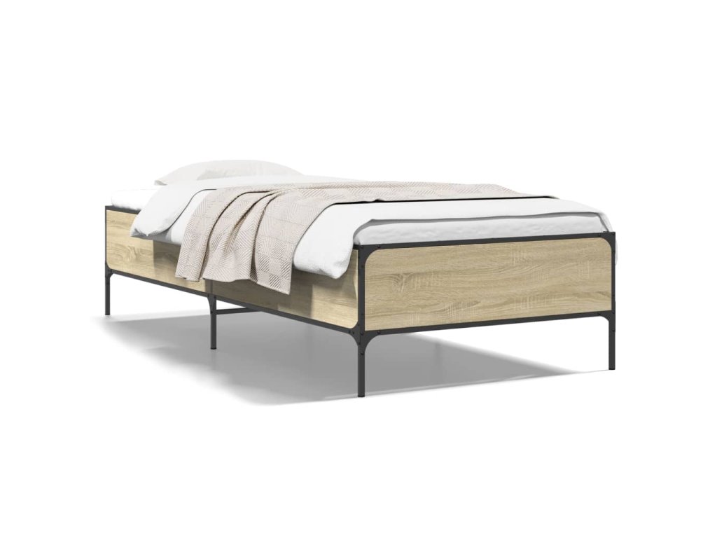 Rám postele dub sonoma 100 x 200 cm kompozitní dřevo a kov 844962