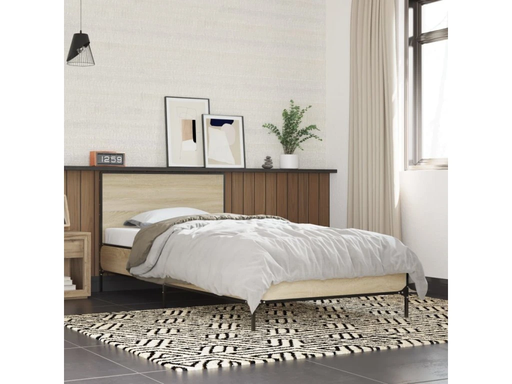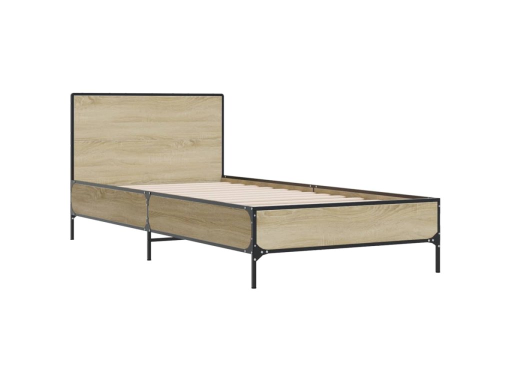 Rám postele dub sonoma 100 x 200 cm kompozitní dřevo a kov 845523