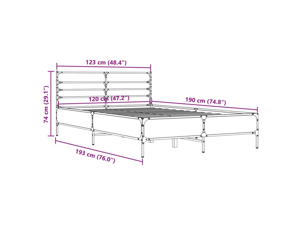 Rám postele dub sonoma 120 x 190 cm kompozitní dřevo a kov 3280068