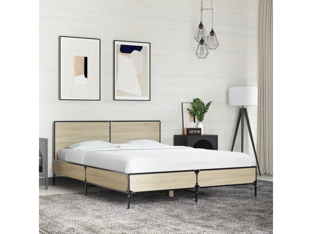 Rám postele dub sonoma 135 x 190 cm kompozitní dřevo a kov 3280028