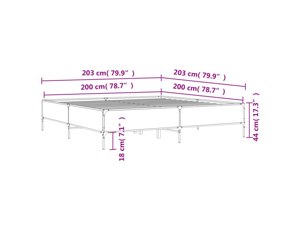 Rám postele dub sonoma 200 x 200 cm kompozitní dřevo a kov 3279778