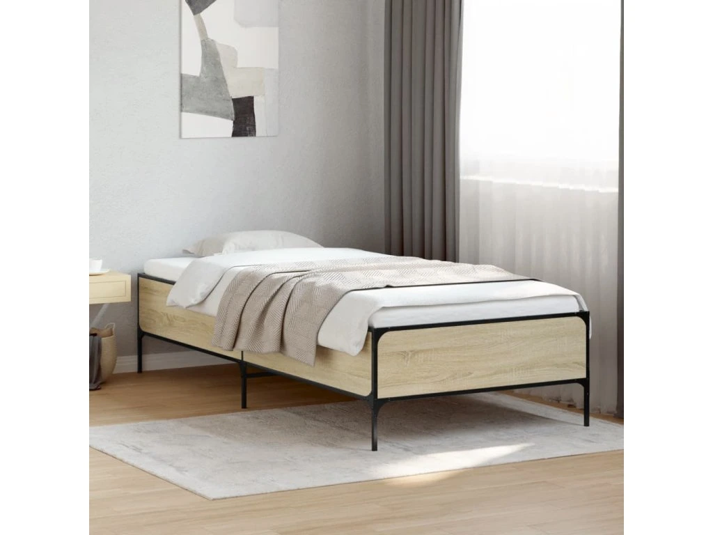 Rám postele dub sonoma 90 x 200 cm kompozitní dřevo a kov 844967