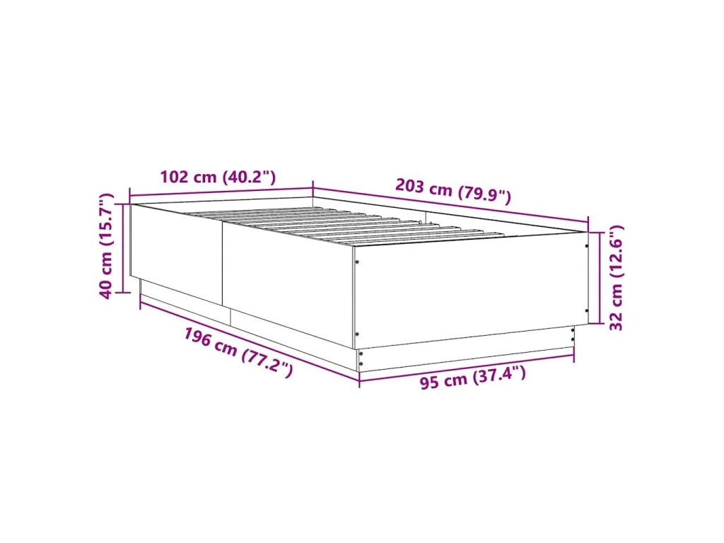 - Celkové rozměry: 203 x 102 x 40 cm (D x Š x V)