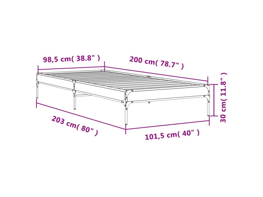 Rám postele hnědý dub 100 x 200 cm kompozitní dřevo a kov 845030