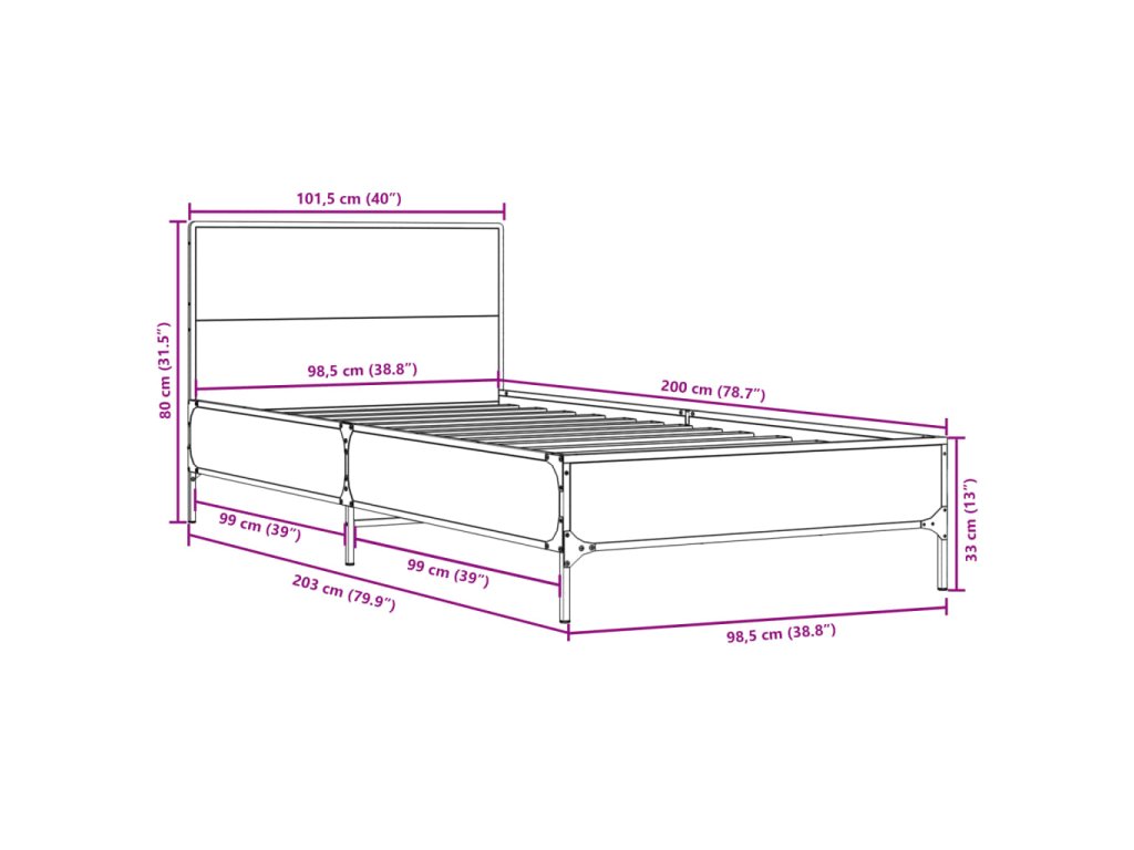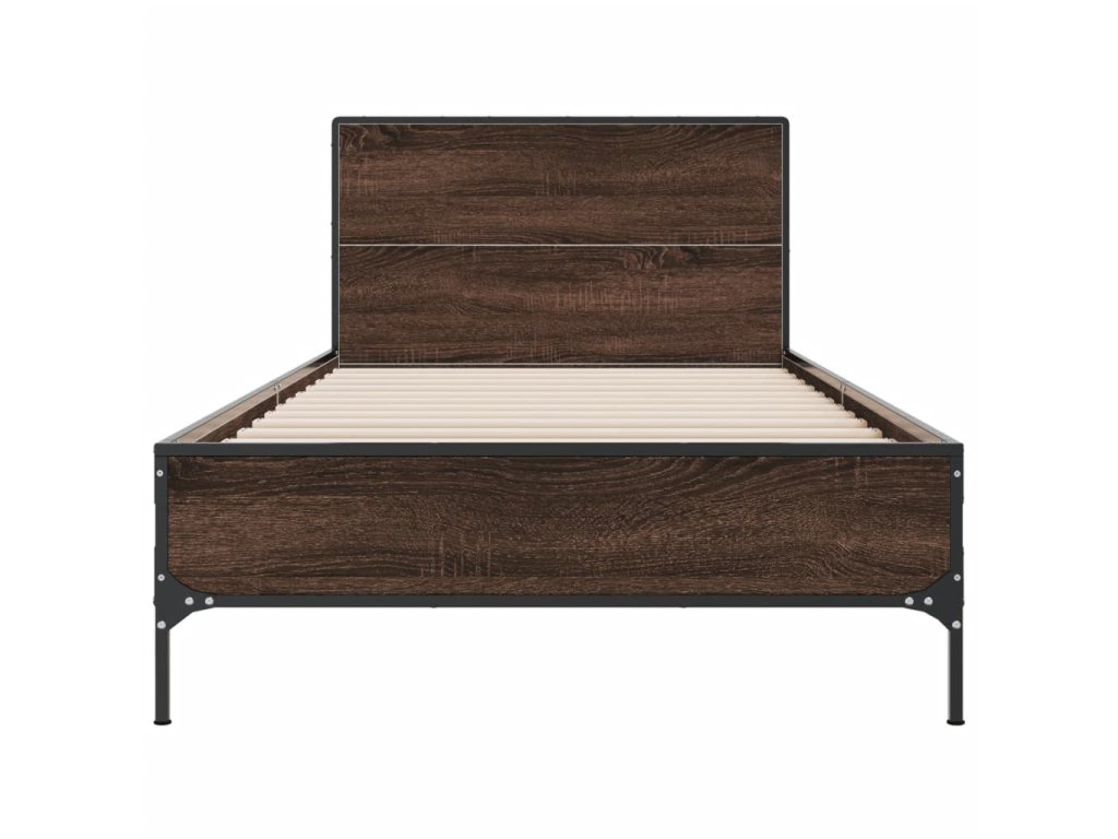 Rám postele hnědý dub 100 x 200 cm kompozitní dřevo a kov 845526