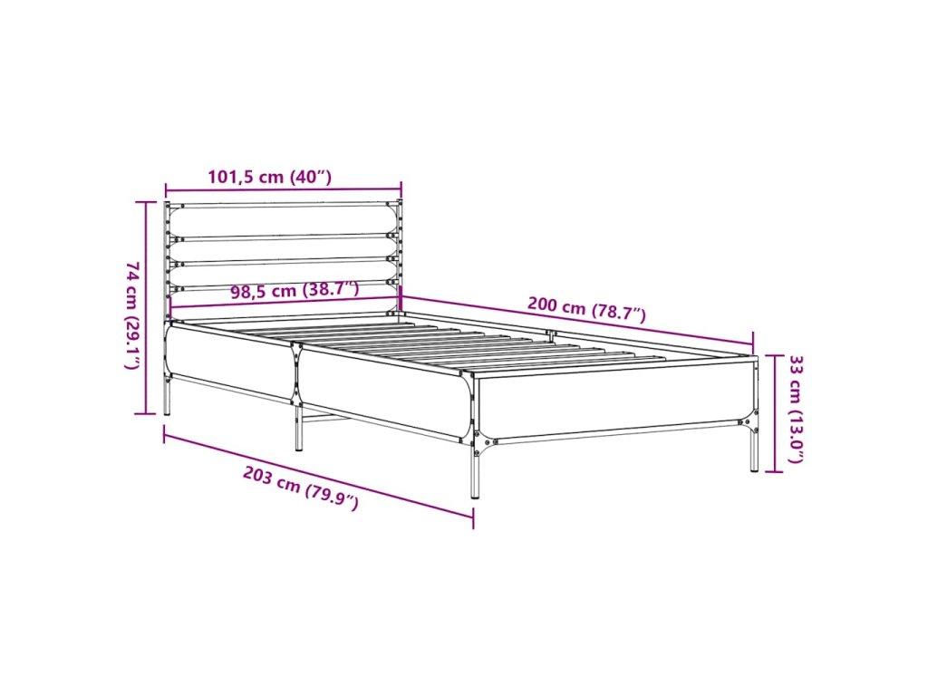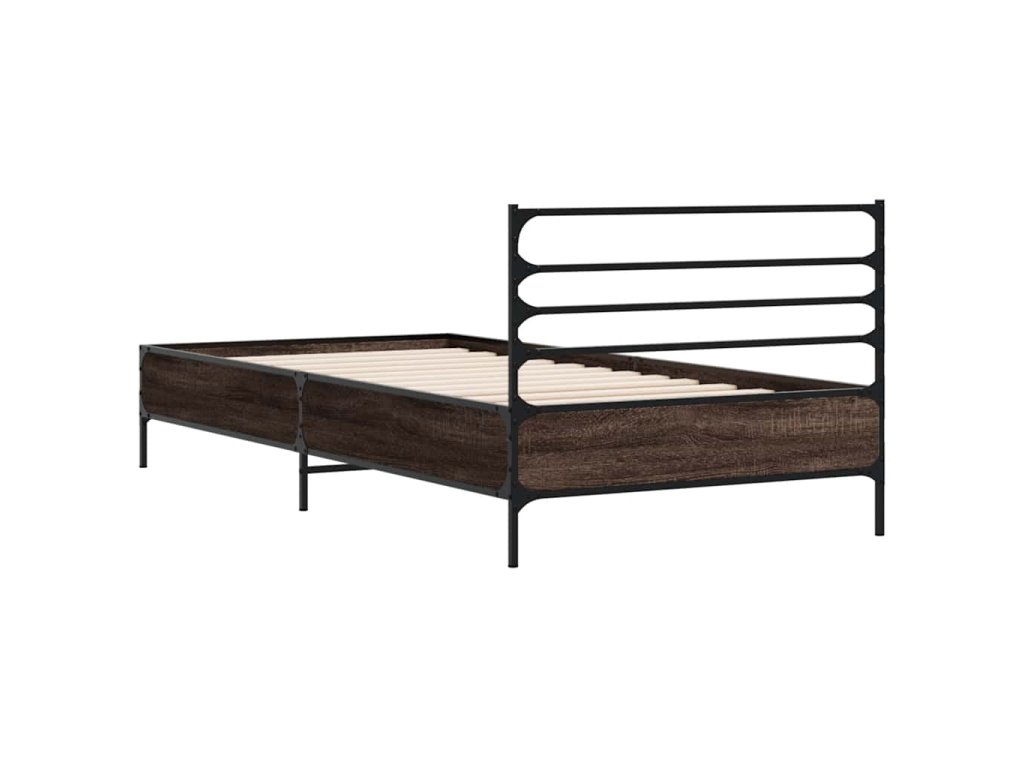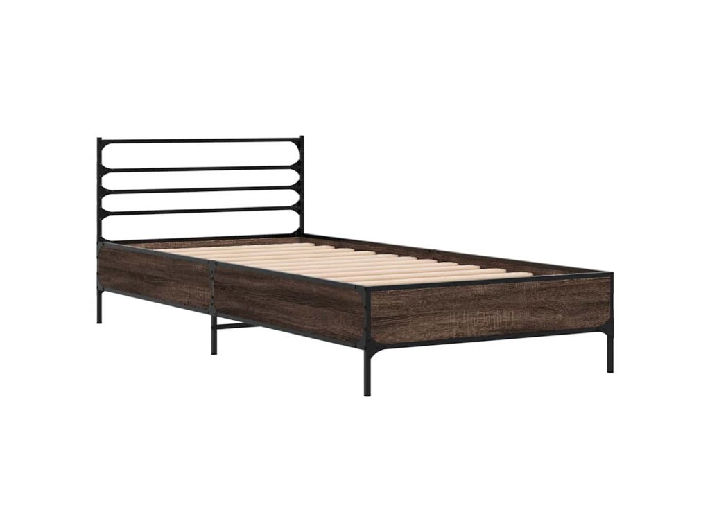 Rám postele hnědý dub 100 x 200 cm kompozitní dřevo a kov 845591
