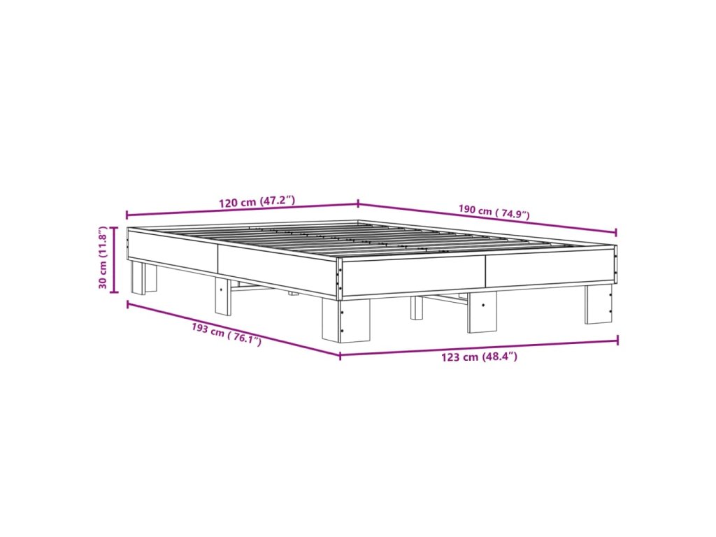 Rám postele hnědý dub 120 x 190 cm kompozitní dřevo a kov 845891