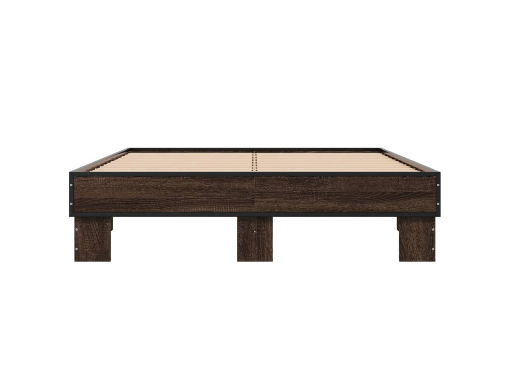 Rám postele hnědý dub 135 x 190 cm kompozitní dřevo a kov 845896
