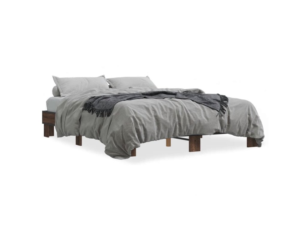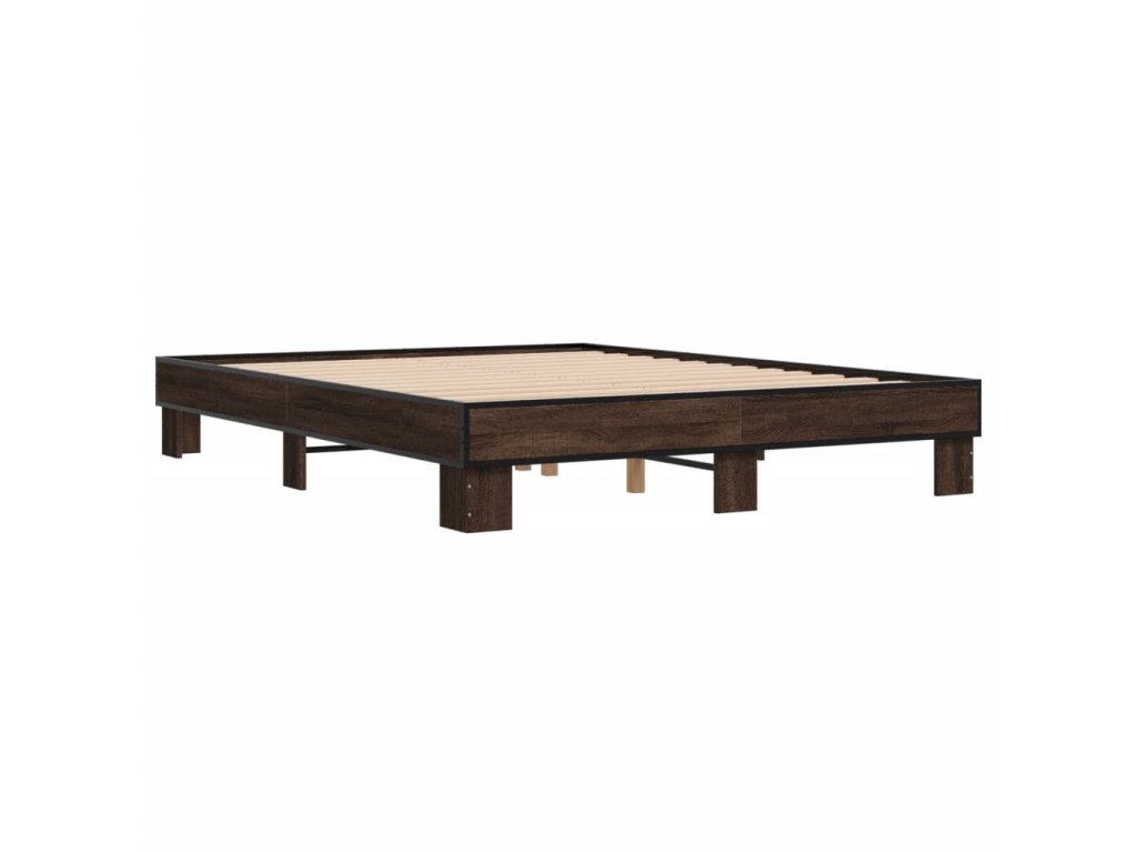 Rám postele hnědý dub 150 x 200 cm kompozitní dřevo a kov 3280236