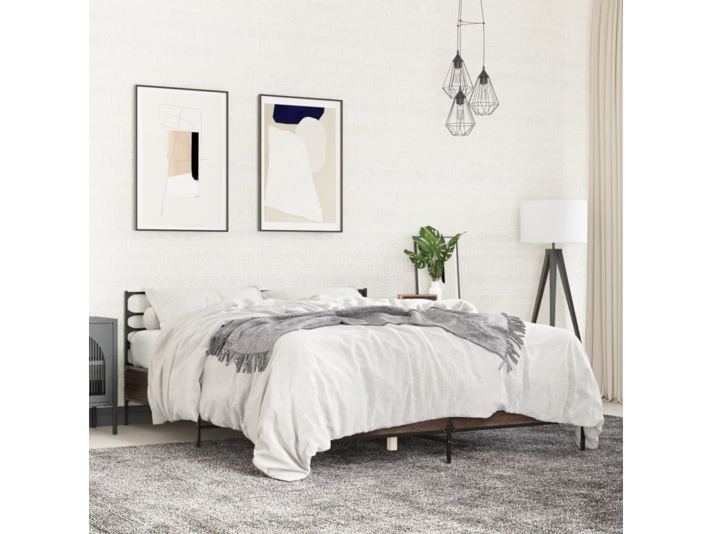 Rám postele hnědý dub 160 x 200 cm kompozitní dřevo a kov 3280056