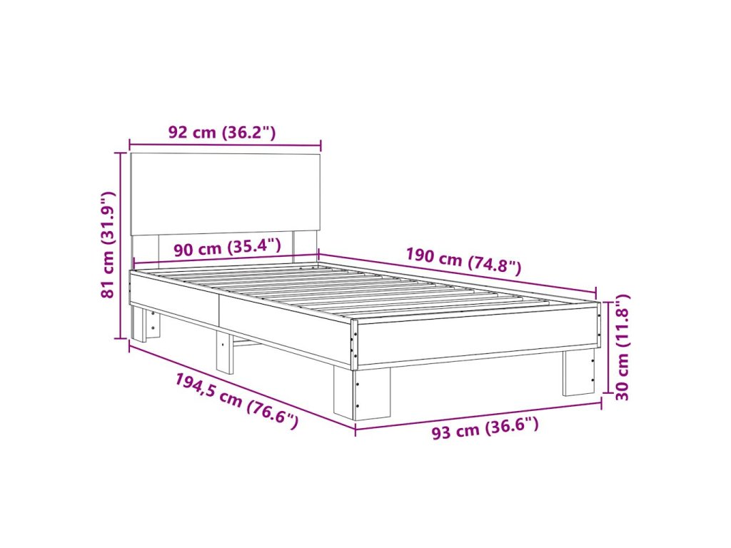 Rám postele hnědý dub 90 x 190 cm kompozitní dřevo a kov 845821