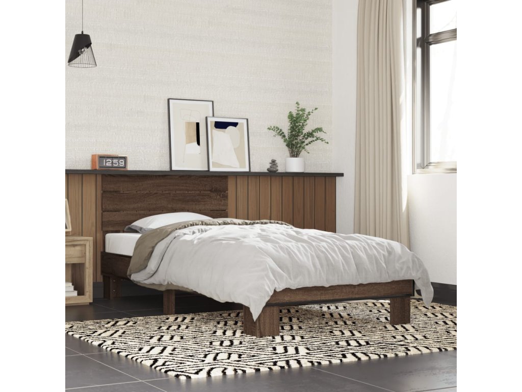 Rám postele hnědý dub 90 x 200 cm kompozitní dřevo a kov 845746