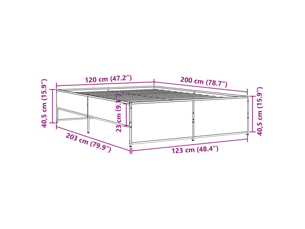 Rám postele kouřový dub 120 x 200 cm kompozitní dřevo a kov 3279894