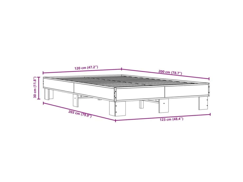Rám postele kouřový dub 120 x 200 cm kompozitní dřevo a kov 845864