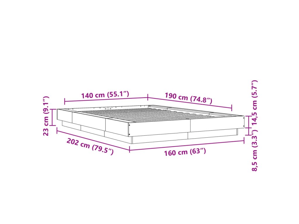 Rám postele kouřový dub 140 x 190 cm kompozitní dřevo 3281221