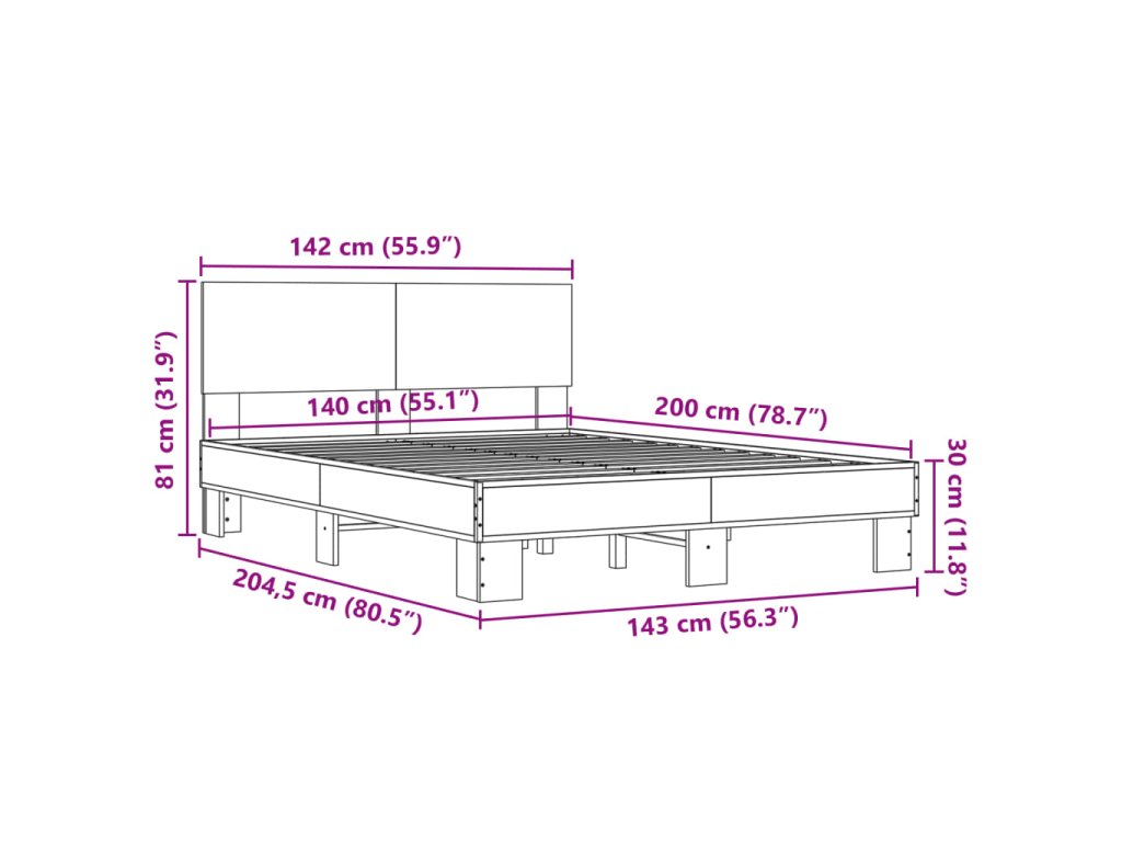 Rám postele kouřový dub 140 x 200 cm kompozitní dřevo a kov 3280194