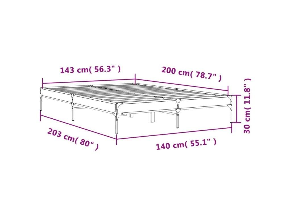 Rám postele kouřový dub 140 x 200 cm kompozitní dřevo a kov 845018