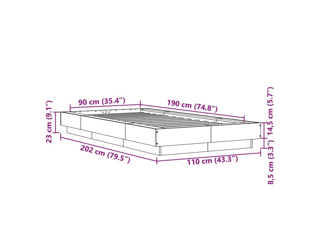 Rám postele kouřový dub 90 x 190 cm kompozitní dřevo 3281242