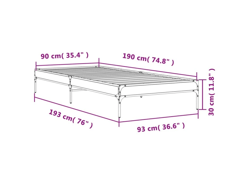 Rám postele kouřový dub 90 x 190 cm kompozitní dřevo a kov 845053
