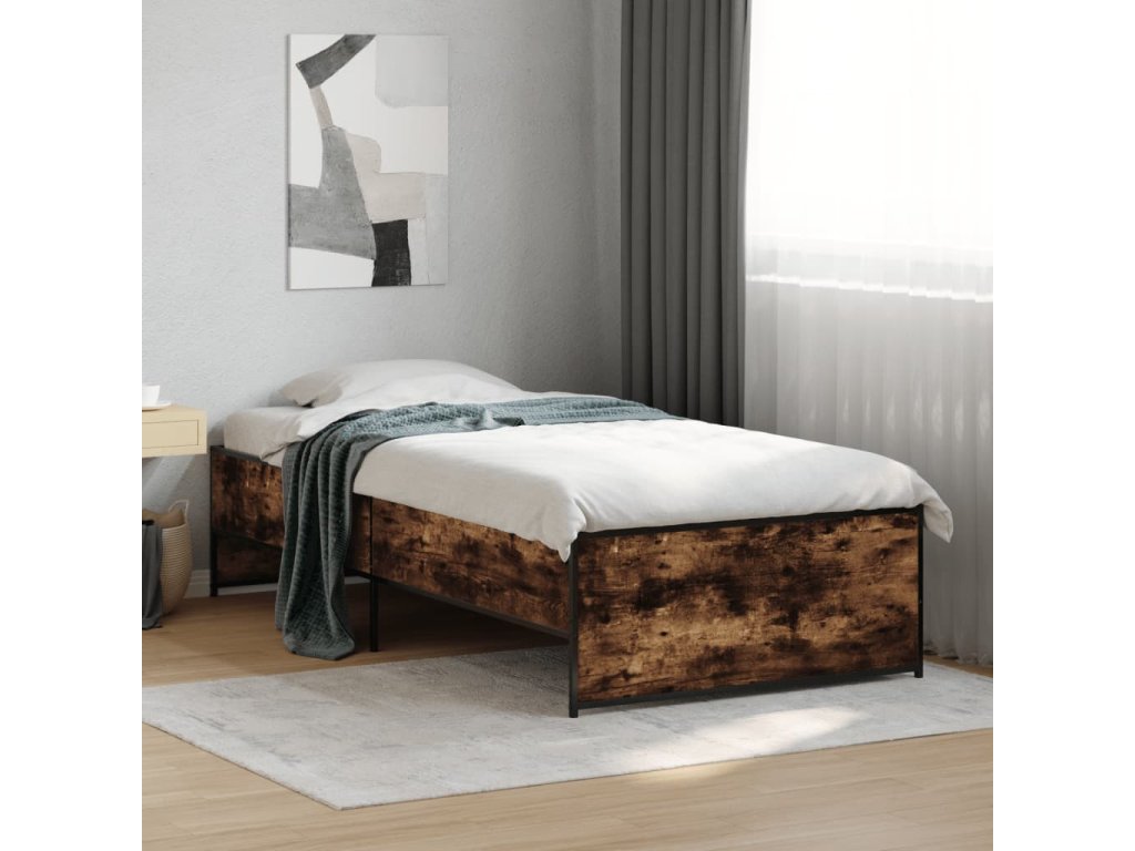 Rám postele kouřový dub 90 x 200 cm kompozitní dřevo a kov 845243