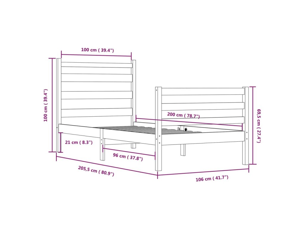 - Tento rám postele je vhodný pro matrace o rozměrech 100 x 200 cm.