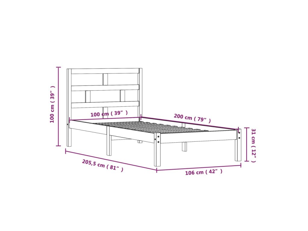 Rám postele masivní borovice 100 x 200 cm 3101208