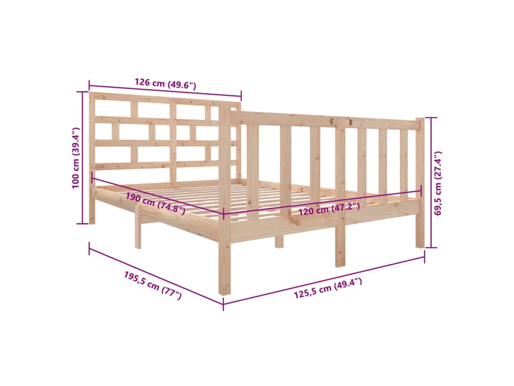 - Rozměry rámu postele: 195,5 x 125,5 x 69,5 cm (D x Š x V)