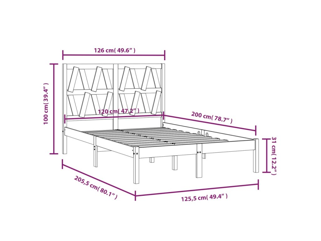 - Rozměry rámu postele: 205,5 x 125,5 x 31 cm (D x Š x V)