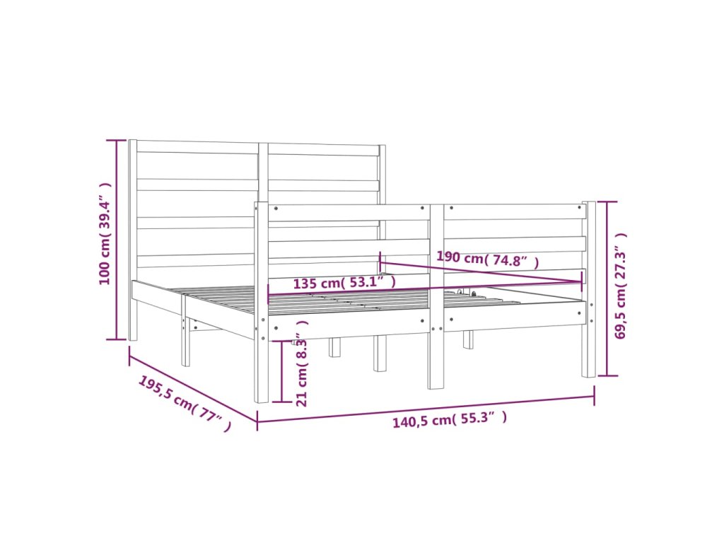 - Tento dřevěný rám postele je vhodný pro matrace o rozměrech 135 x 190 cm (Double).