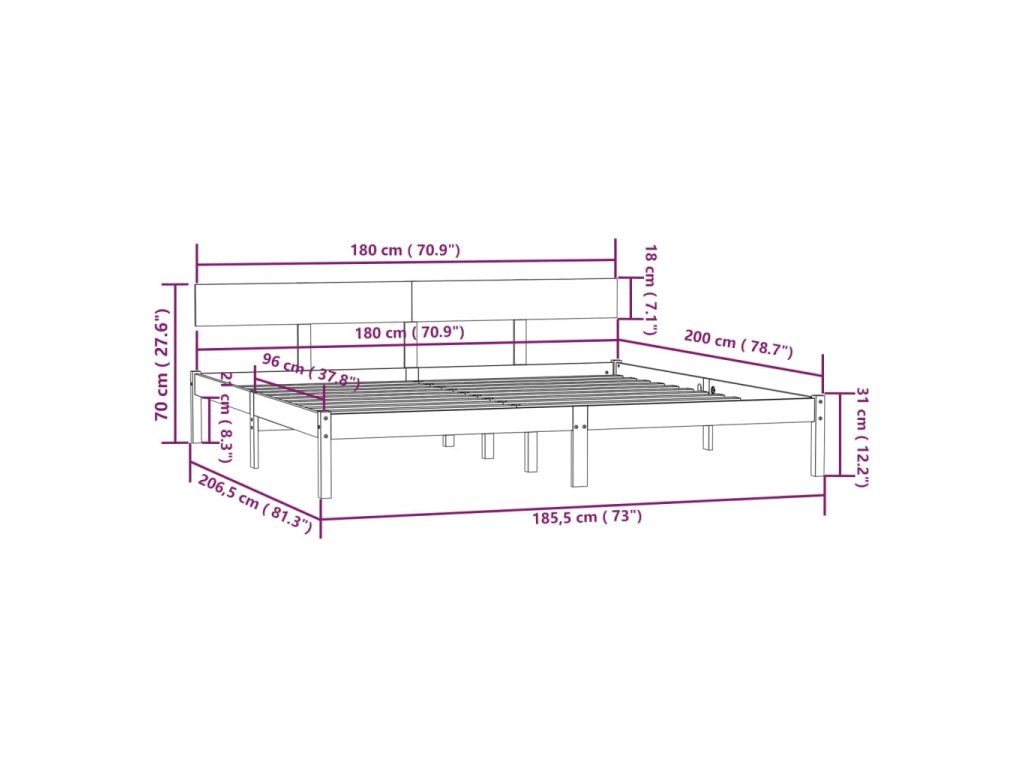 Rám postele masivní borovice 180 x 200 cm Super King Size 810162