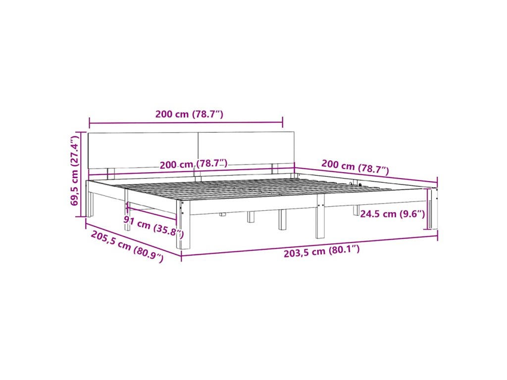 Rám postele masivní borovice 200 x 200 cm 810515
