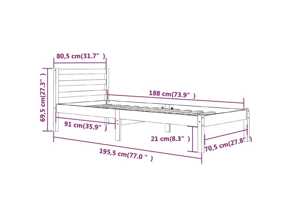 - Tento rám postele je vhodný pro matrace o rozměrech 75 x 190 cm (2FT6 Small Single)