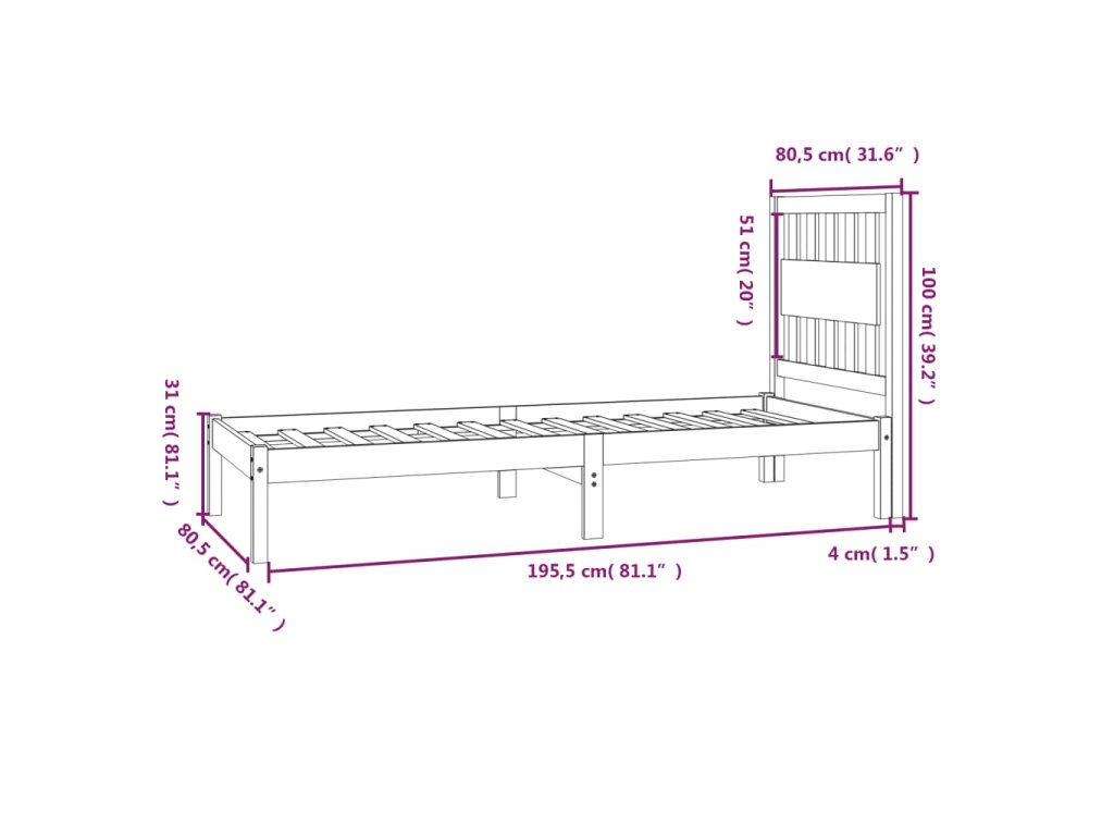 - Rozměry rámu postele: 195,5 x 80,5 x 31 cm (D x Š x V)