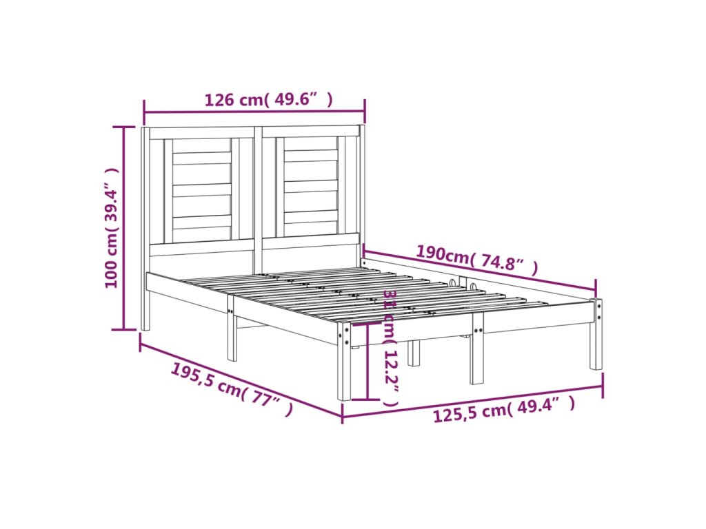 - Rozměry rámu postele: 195,5 x 125,5 x 31 cm (D x Š x V)