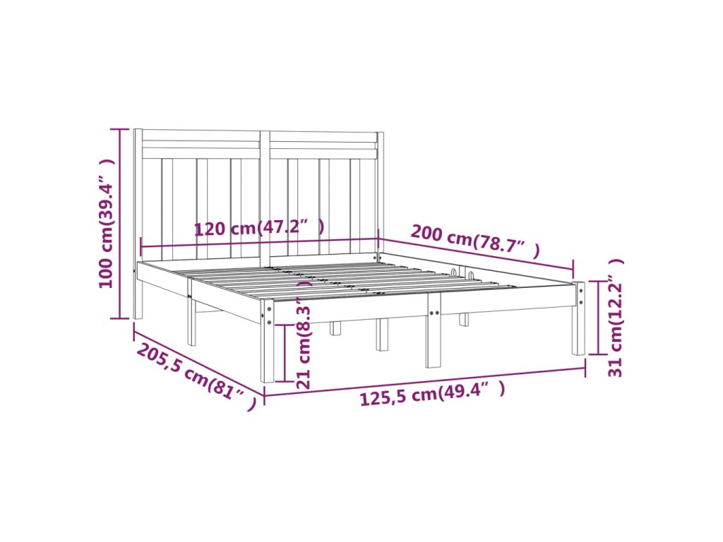 - Rozměry rámu postele: 205,5 x 125,5 x 31 cm (D x Š x V)