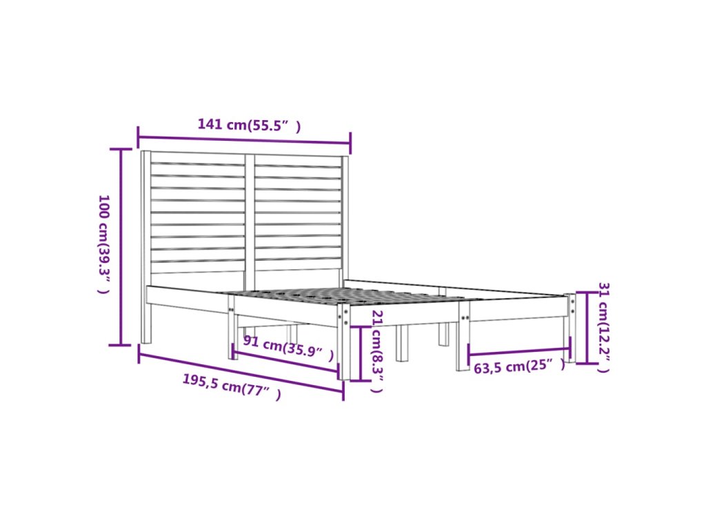 - Celkové rozměry rámu postele: 195,5 x 141 x 100 cm (D x Š x V)