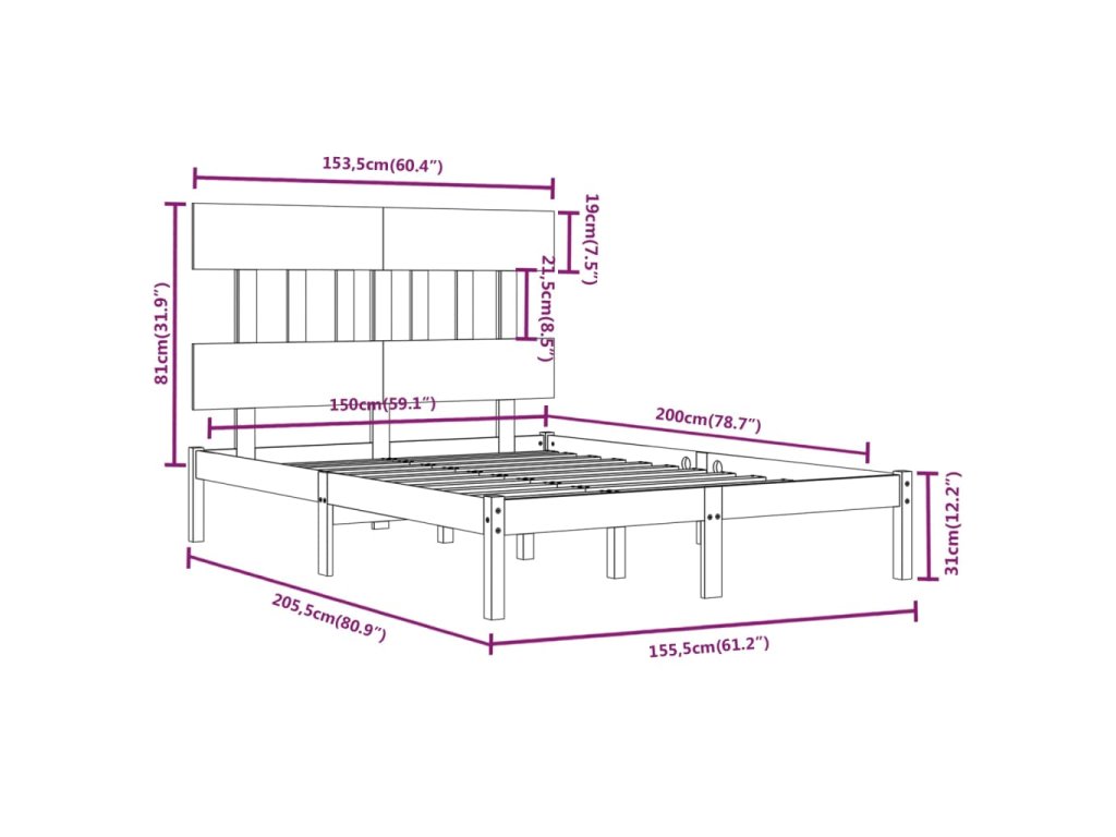 - Rozměry rámu postele: 205,5 x 155,5 x 31 cm (D x Š x V)