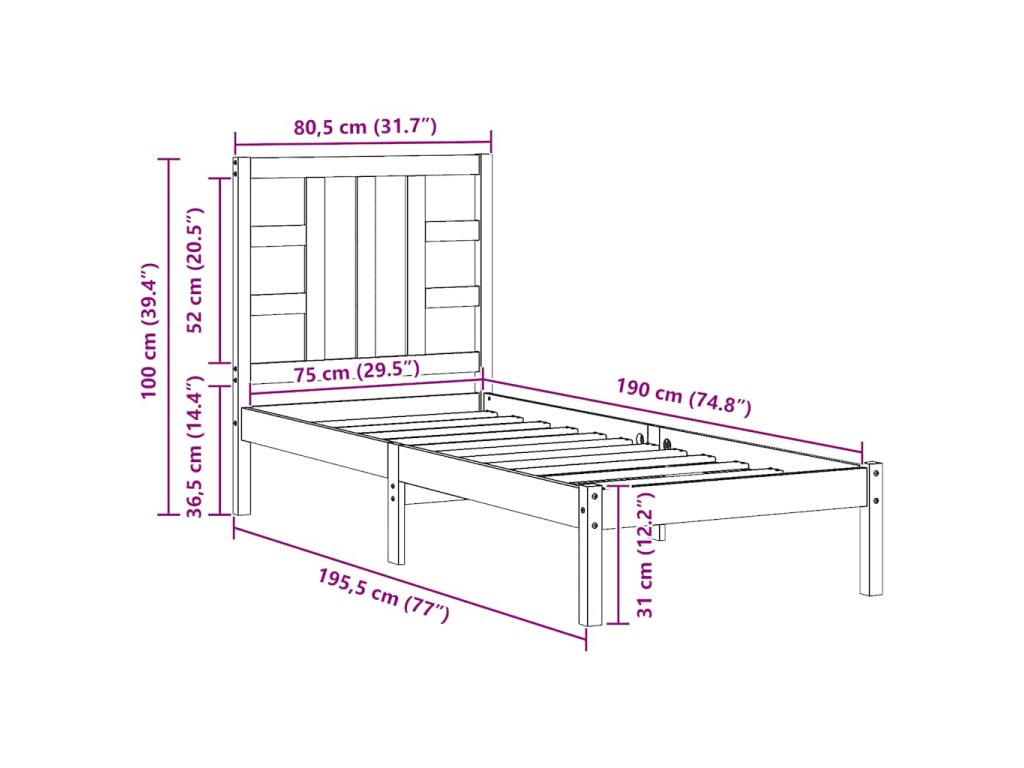 - Rozměry rámu postele: 195,5 x 80,5 x 31 cm (D x Š x V)
