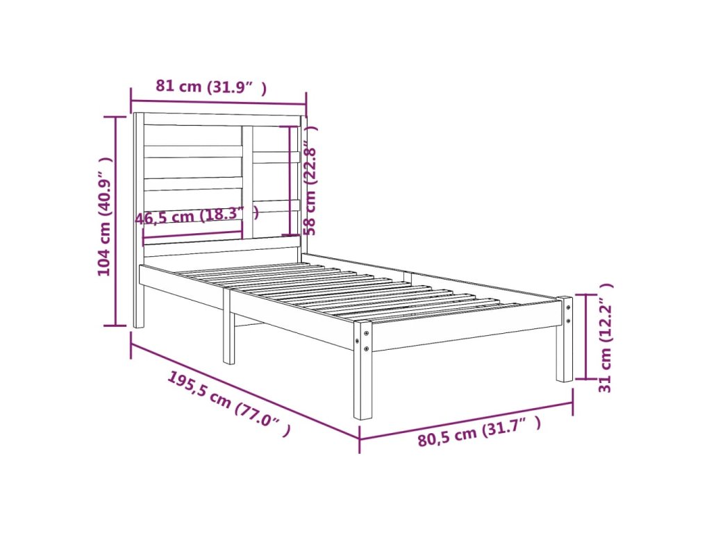 - Rozměry čela postele: 81 x 4 x 104 cm (Š x H x V)