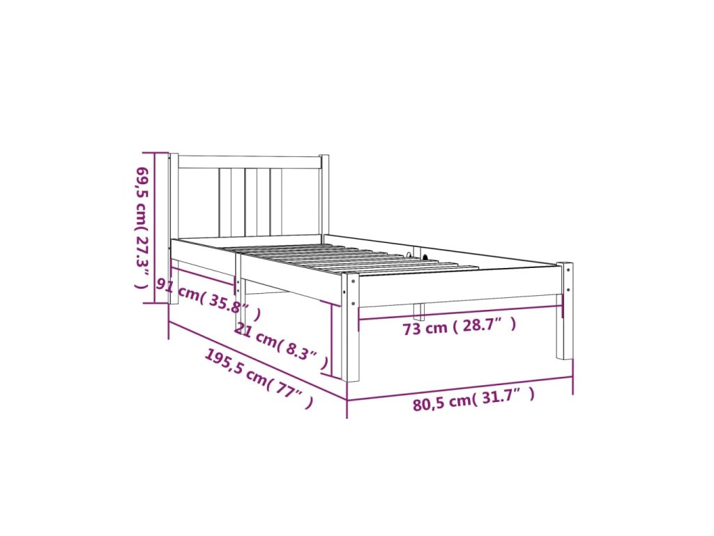 - Tento rám postele je vhodný pro matrace o rozměrech 75 x 190 cm (2FT6 Small Single)