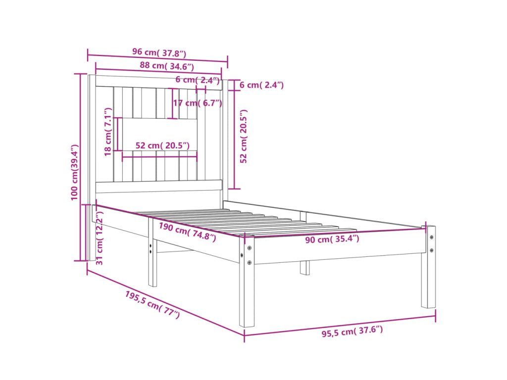 - Tento rám postele je vhodný pro matrace o rozměrech 90 x 190 cm (3FT Single).