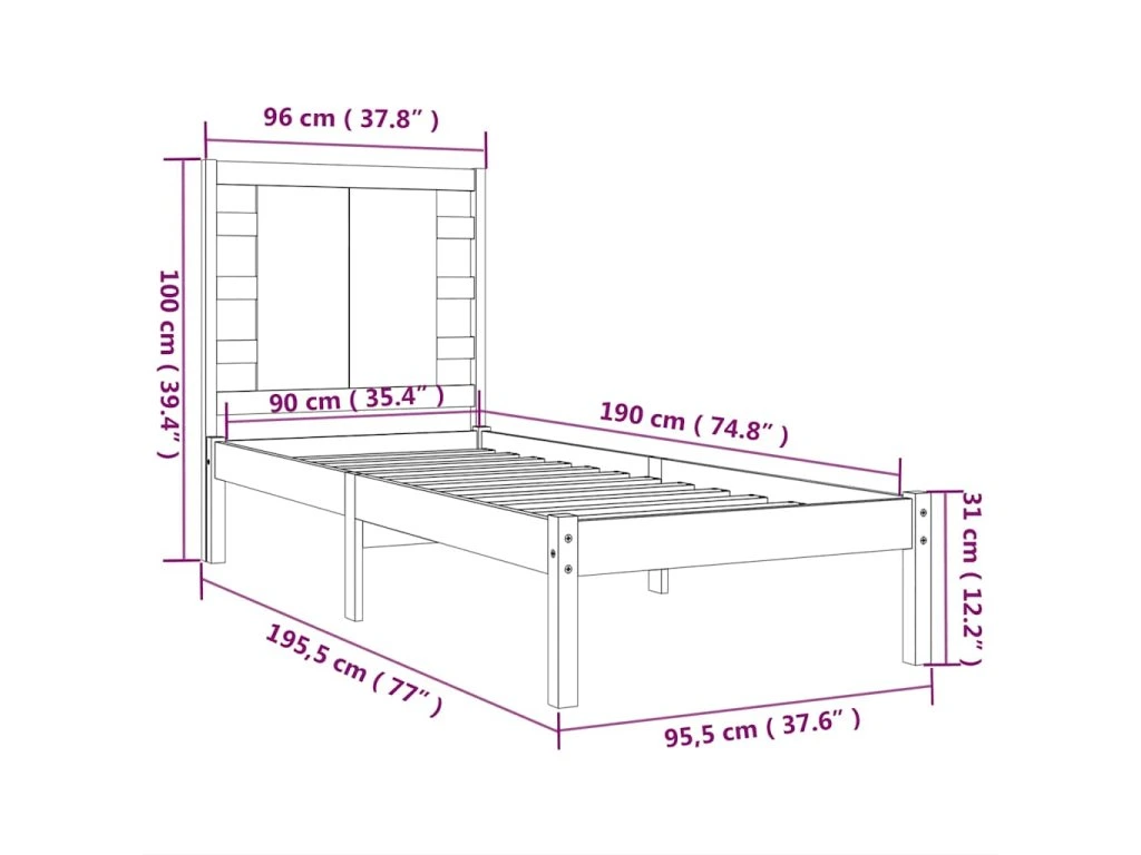 Rám postele masivní dřevo 90 x 190 cm Single 3104183