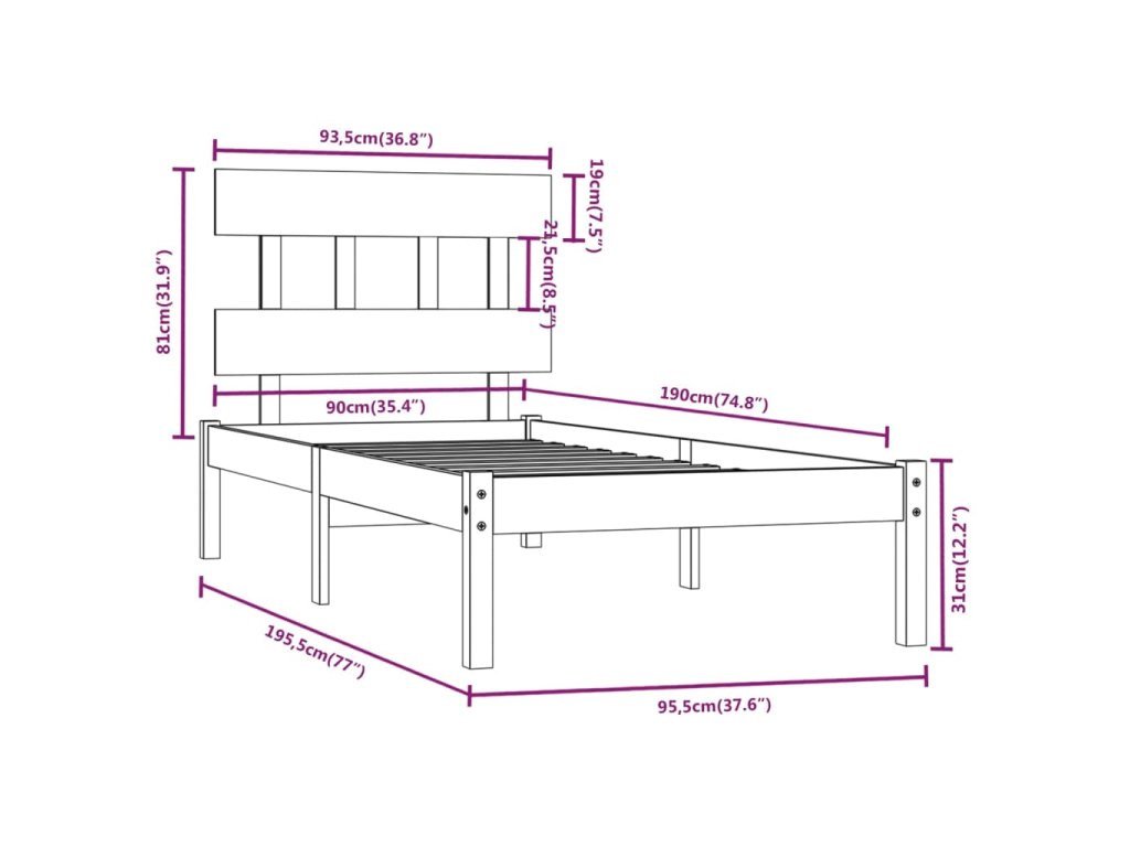 - Rozměry rámu postele: 195,5 x 95,5 x 31 cm (D x Š x V)