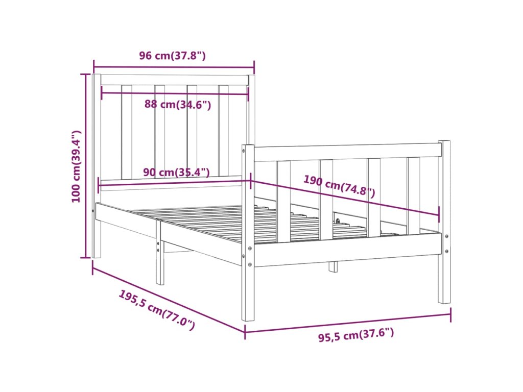 - Rozměry rámu postele: 195,5 x 95,5 x 69,5 cm (D x Š x V)