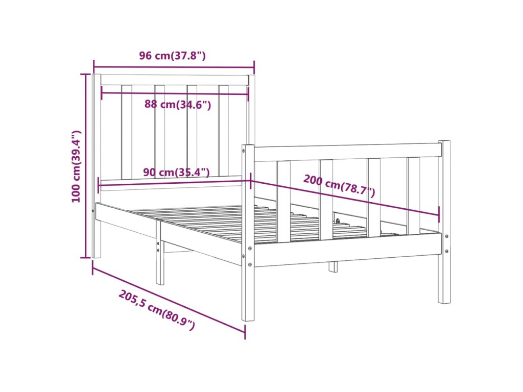 Rám postele masivní dřevo 90 x 200 cm 3106818