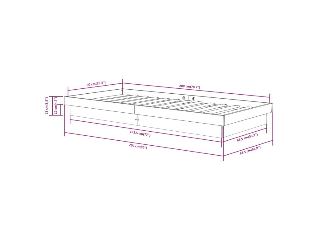 - Celkové rozměry: 204 x 93,5 x 21 cm (D x Š x V)