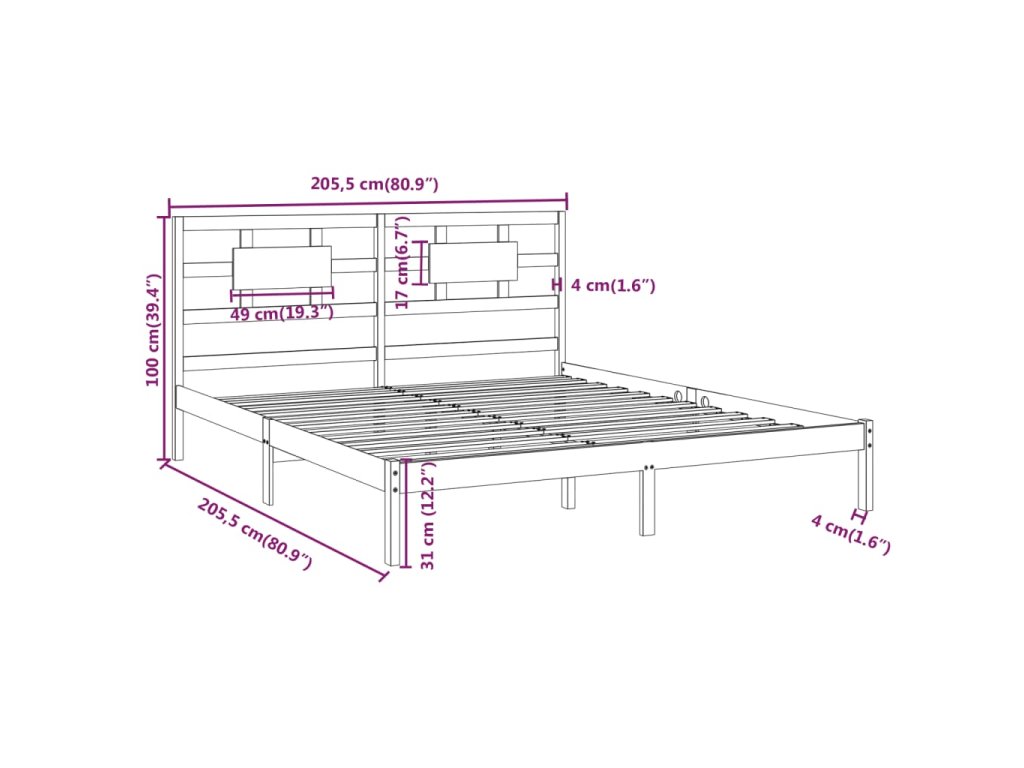 - Celkové rozměry rámu postele: 205,5 x 205,5 x 100 cm (D x Š x V)
