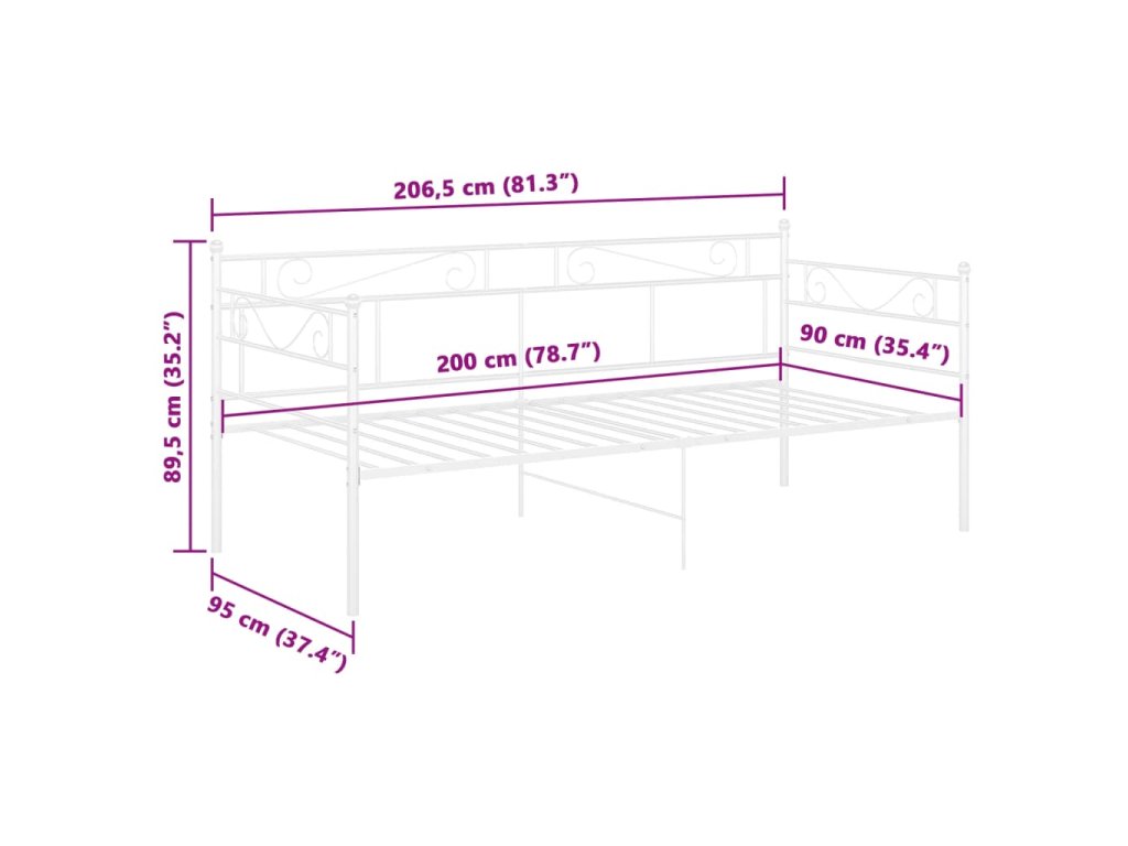 Rám postele/pohovky bílý kovový 90 x 200 cm 324768