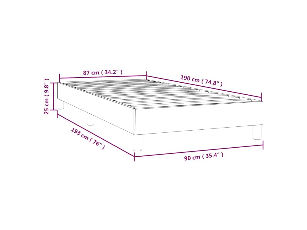 - Celkové rozměry: 193 x 90 x 25 cm (D x Š x V)