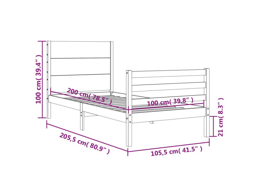 - Celkové rozměry postele: 205,5 x 105,5 x 100 cm (D x Š x V)